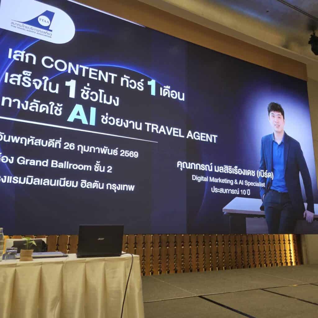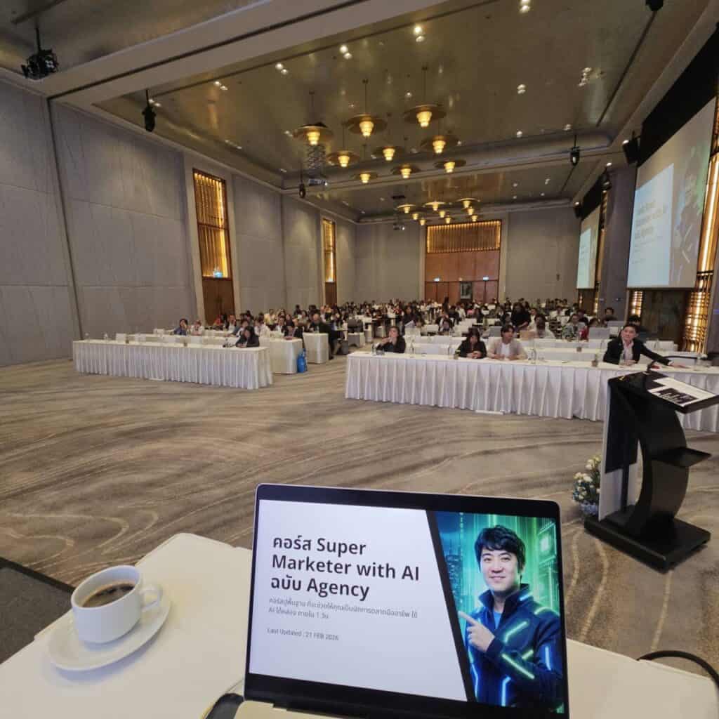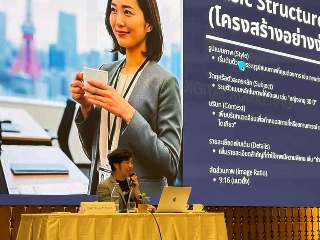 | 13:30–14:30 | 60 นาที | ใช้ AI ทำ Content (ข้อความ) ฉบับ Agency | Framework การคุยกับ AI (ต้องมี Insight ก่อน) • Caption • Ad Copy • Sales Page • Script วิดีโอ • โครงร่างบทความ SEO (Tools: NotebookLM, Gemini, ChatGPT) |